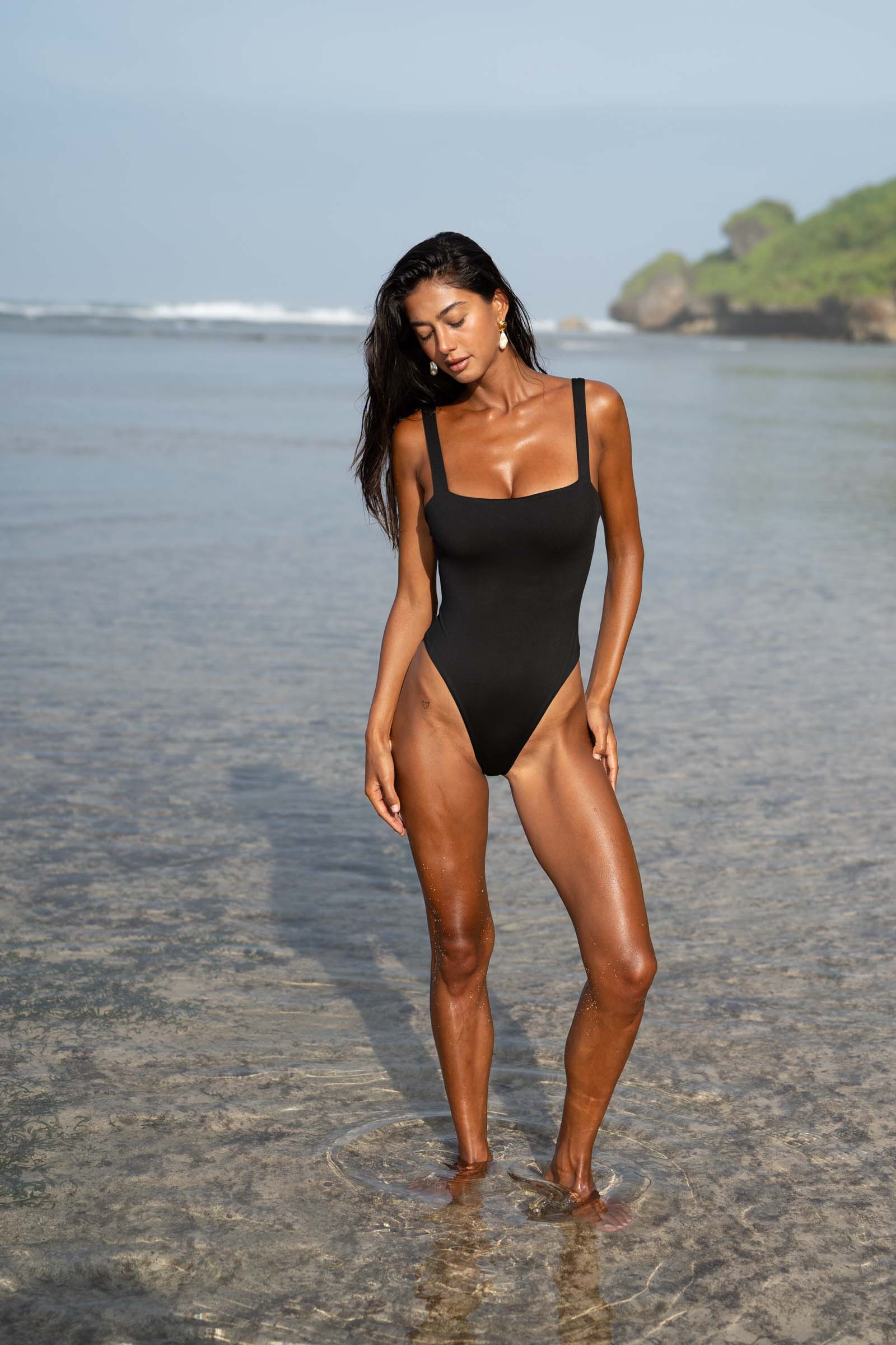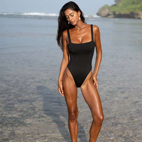 Elegant and timeless, the Selene One Piece features a flattering square neckline with a slightly lower cut at the top, creating a sleek and sophisticated silhouette. The high leg cut elongates your physique, while strategically placed stretch points offer maximum comfort and freedom of movement. Crafted from our luxurious, soft Italian fabric, it feels like a second skin. Perfectly versatile, it can effortlessly transition from beachwear to a chic bodysuit for wearing out.
